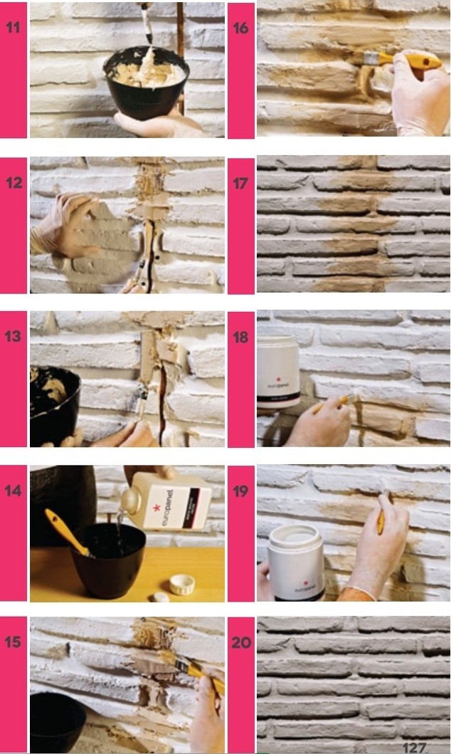 Adım 12: Derzlerin Doldurulması Hazırladığınız macun kıvamındaki mastiği, spatula kullanarak paneller arasındaki 1 cm’lik derz boşluklarına tatbik edin (Görsel 12). Boşlukları tamamen doldurduğunuzdan emin olun. Panelin doğal dokusuna uyum sağlayacak şekilde macunu yayın.